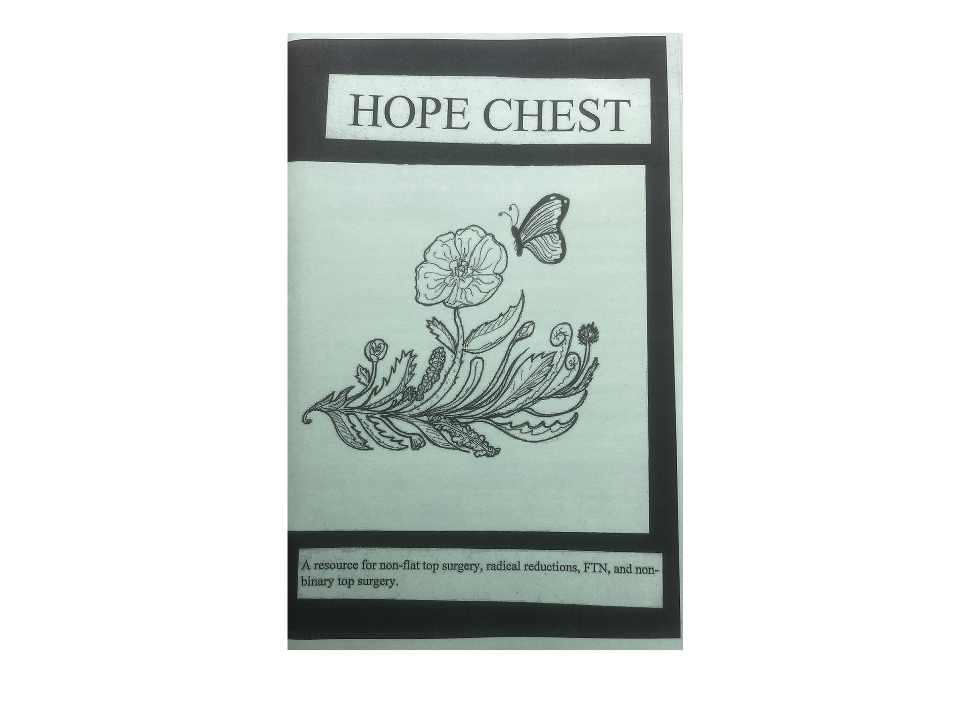 A guide to help people navigate non-flat top surgery from exploring transition goals and social frictions to healing and revisions. This zine challenges the transnormativity that is often imposed on trans people interested in surgery. I have had this type of surgery and found there was a lack of resources and support– so I created something that will help people who are in my position!