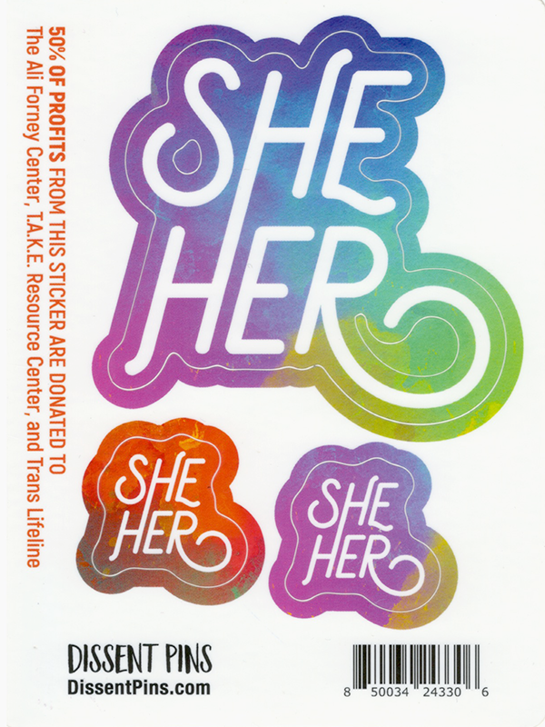 Dissent Pins donates 50% of their profits from these stickers to: T.A.K.E. Resource Centre (Birmingham), The Ali Forney Centre (NYC), and The Trans Lifeline.